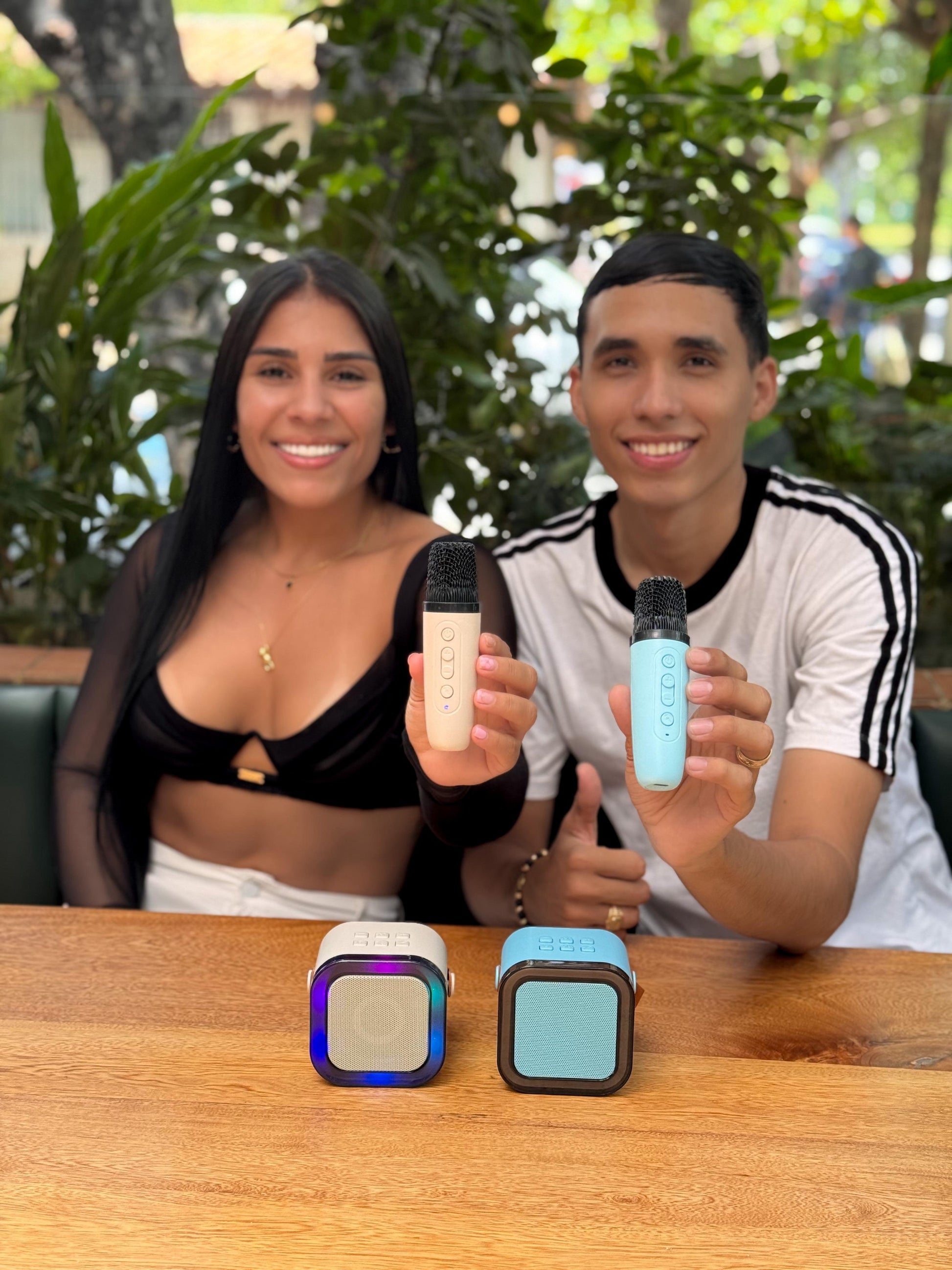 Sonido premium: audífonos inalámbricos y parlante con micrófono para escuchar música y disfrutar del karaoke en cualquier lugar.
