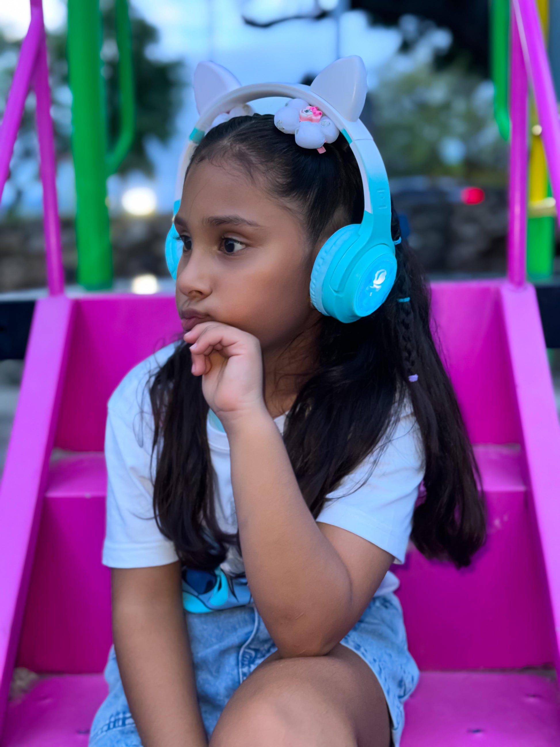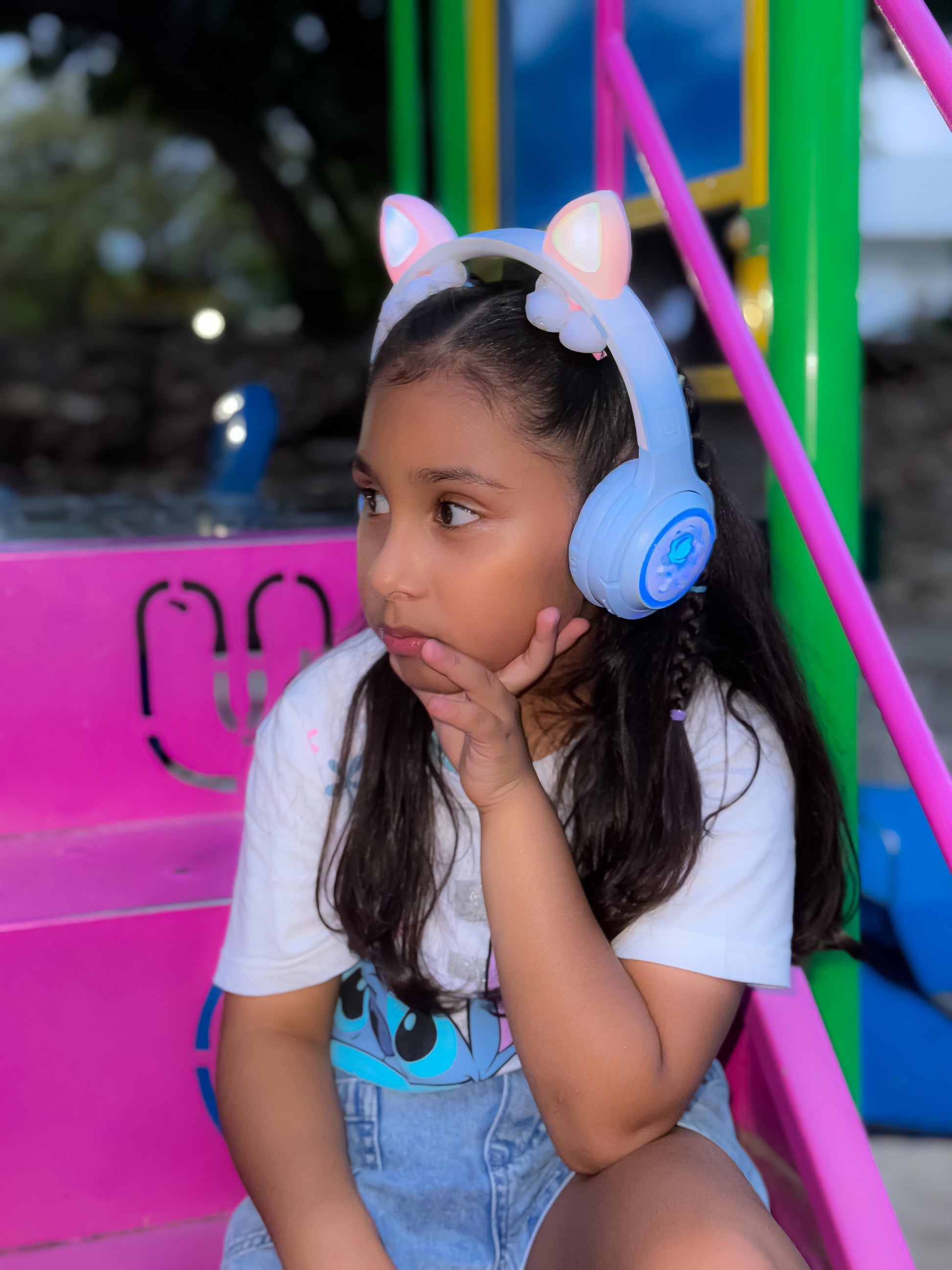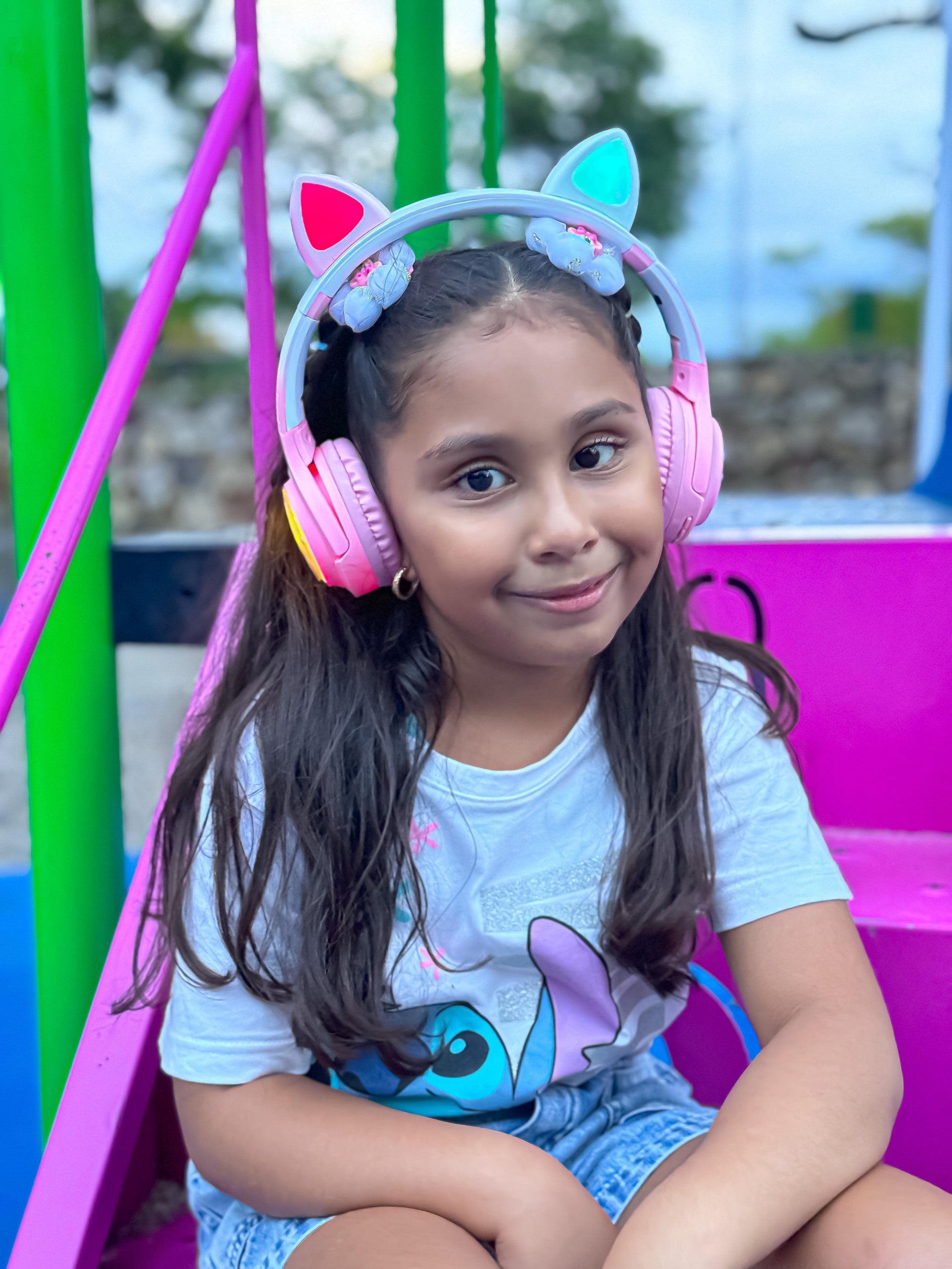 • Diseño con orejas de gato luminosas que encienden luces LED de colores, ideal para un look juvenil, divertido y moderno.