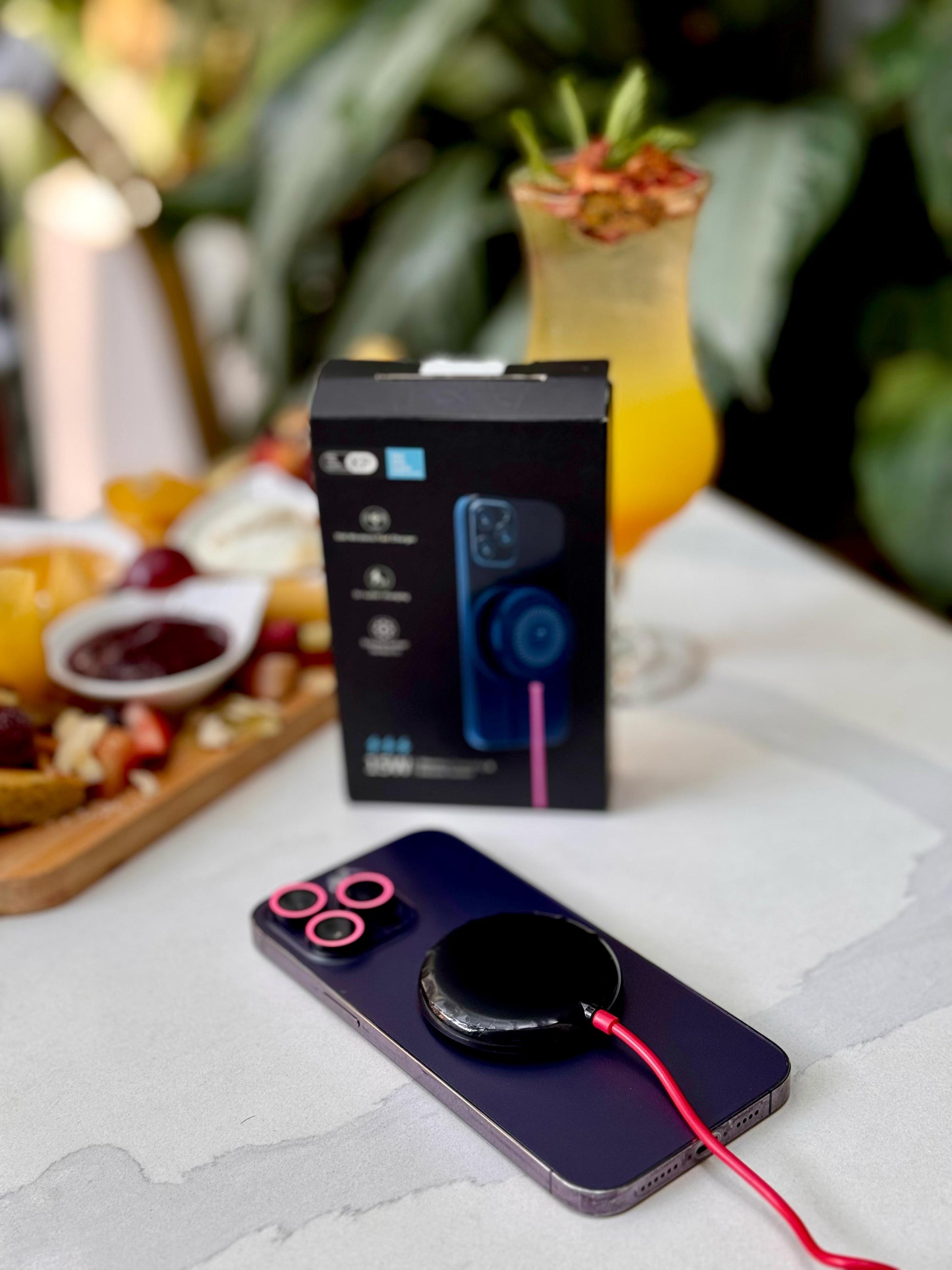 Ventosa incorporada: incluye una ventosa que se adhiere al celular, proporcionando estabilidad durante la carga.