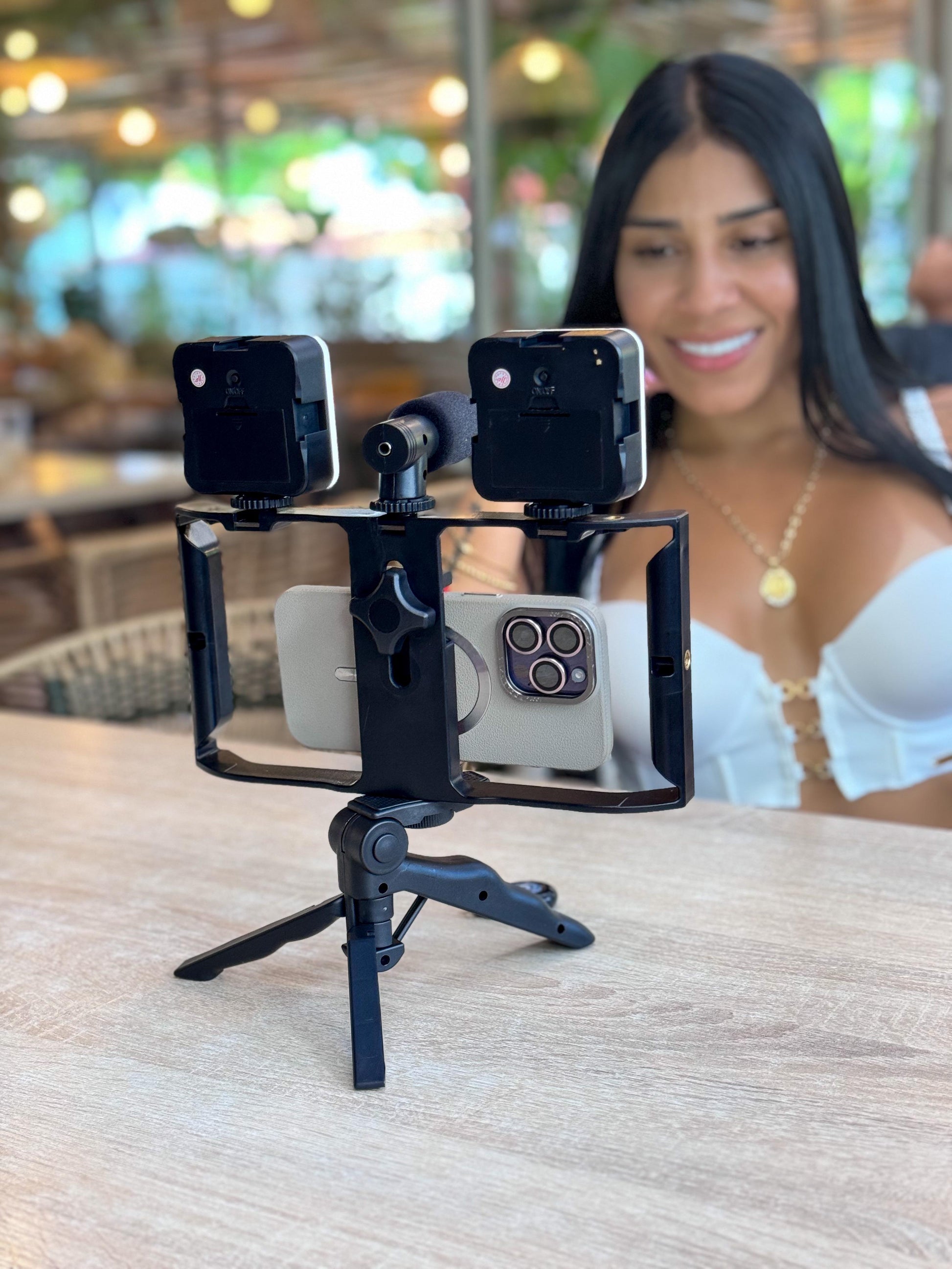 Manos libres: el soporte mantiene el celular estable mientras grabas o transmites.